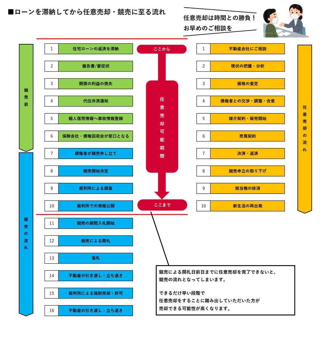 ローンを滞納してから任意売却・競売に至る流れ