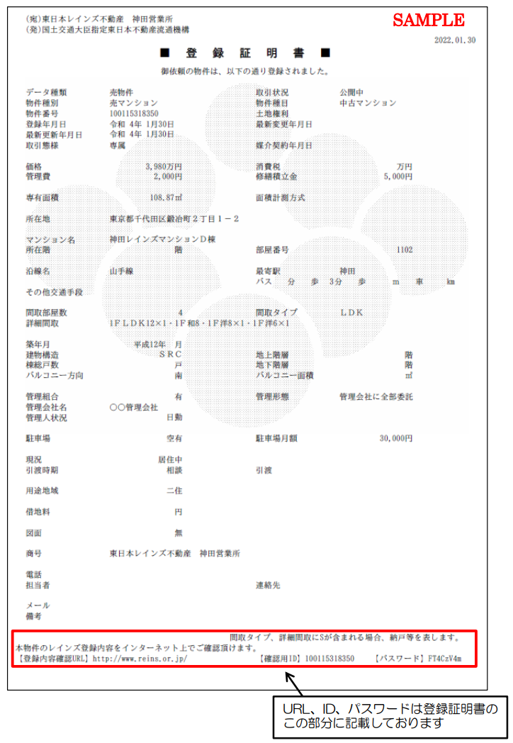 この証明書に記載のURLにアクセスし、IDとパスワードを入力することで、売却する物件がどのように登録されているかを確認することができます。