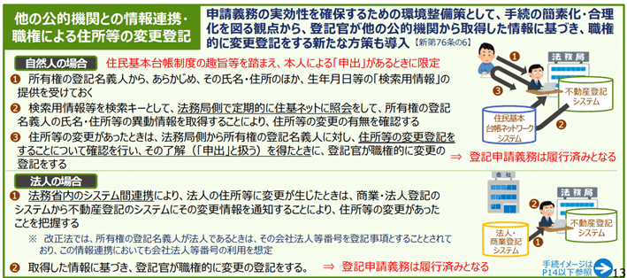 登記官は、所有権の登記名義人の氏名若しくは名称又は住所について変更があったと認めるべき場合として法務省令で定める場合には、法務省令で定めるところにより、職権で、氏名若しくは名称又は住所についての変更の登記をすることができる。ただし、当該所有権の登記名義人が自然人であるときは、その申出があるときに限る。