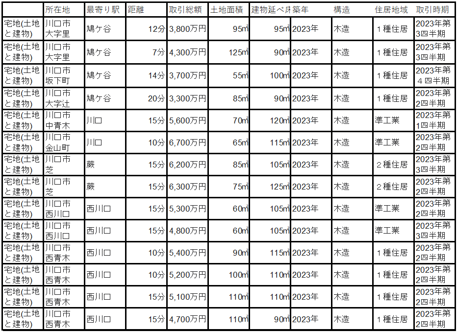 たとえば、過去の成約価格を見てみましょう。国土交通省では、不動産の取引価格などを閲覧できる「不動産情報ライブラリ」を運用しています。ここで、「川口市内」の物件の取引情報を調べてみました。
